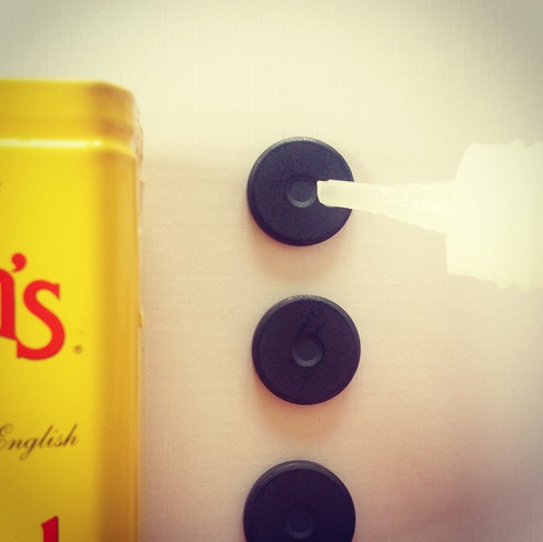 3.After gluing place the magnets with glue side down onto your tin. (be careful not to touch the glue)